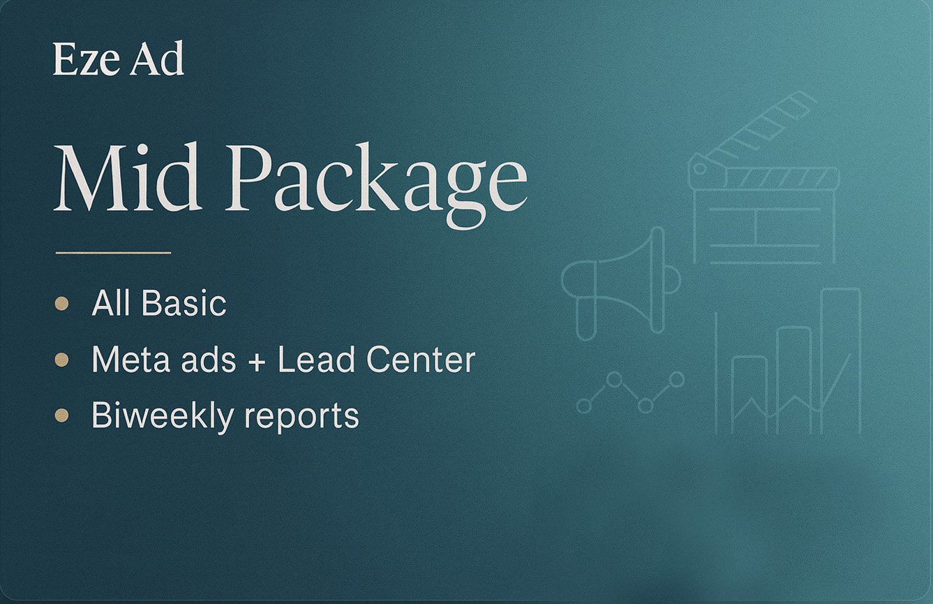Add firepower for high-volume leads. ● All Basic features. ● Ad Management & Lead Center: Meta campaign launch/management with biweekly Google Data Studio reports. Recommend $5k-10k ad budget for 500-1,000 leads/month. ● Proven ROI: 10% conversion on $1,500-3,650 tickets, per Get Refreshed data.